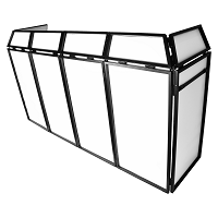 Als je meer nodig hebt dan een simpele DJ-controller met twee decks, bijvoorbeeld vier decks en nog wat losse samplers ernaast, dan zul je ook een grotere DJ-booth willen. Je moet 't spul toch kwijt, en een kleine/normale DJ-booth kan dan net te krap zijn. Vandaar dat je van Tyfoon Entertainment ook een grote booth kunt Huren: de FlexBooth 500. Dit systeem bestaat uit een los frame en losse panelen die je middels klittenband erop kunt 'plakken'. Voor een complete booth zul je dus altijd in twee losse producten moeten investeren. Dat kan makkelijker, vandaar deze complete set waar deze twee deelproducten gewoon in zitten.